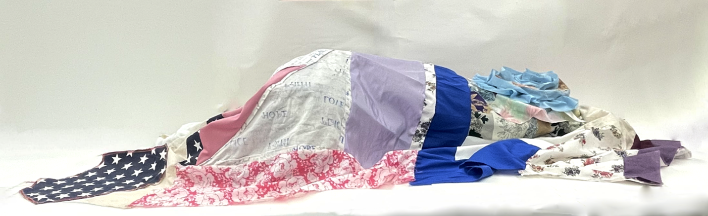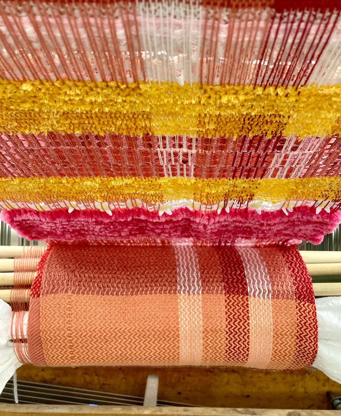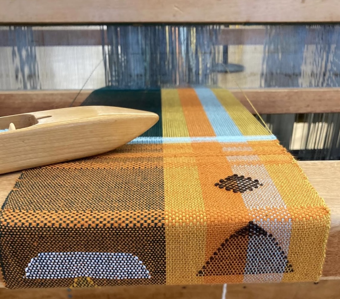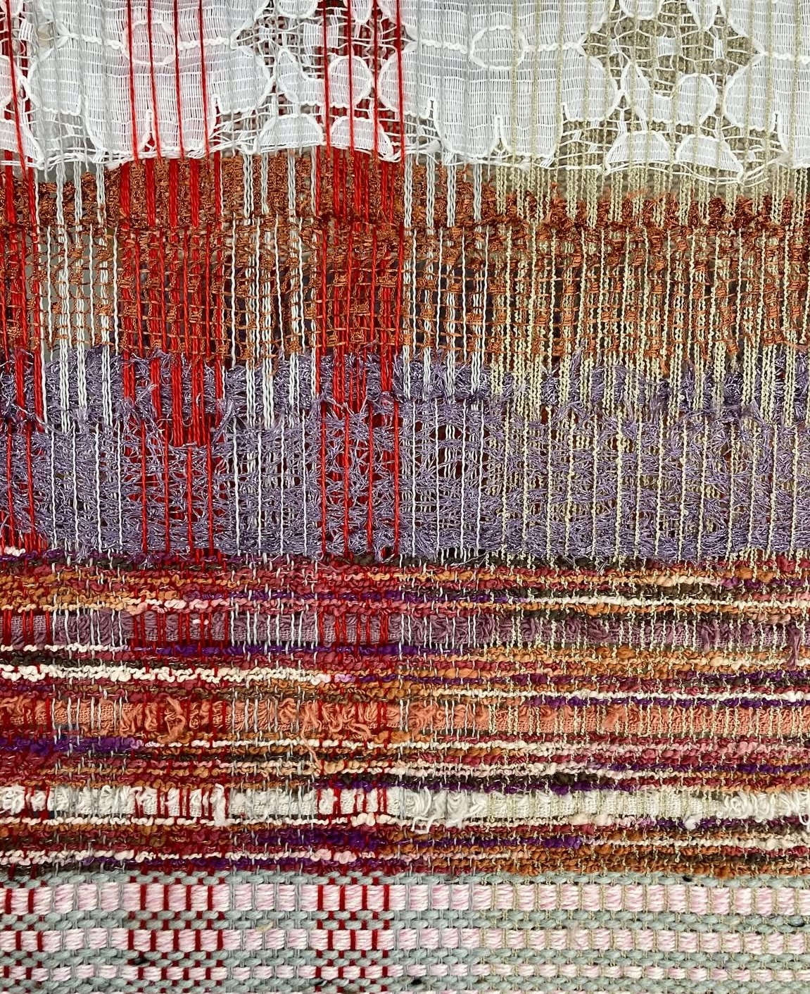 Students were taught to weave on the multi-harness floor loom, including loom setup, weave drafting, and an introduction to basic and complex woven cloth constructions. Additional studio exploration and projects were undertaken using off-loom weaving techniques such as rigid heddle weaving, stick weaving, basketry, macramé, and netting, as well as a collaborative weaving project focused on sustainability. The work of traditional and contemporary weavers, fiber artists, and designers was discussed.