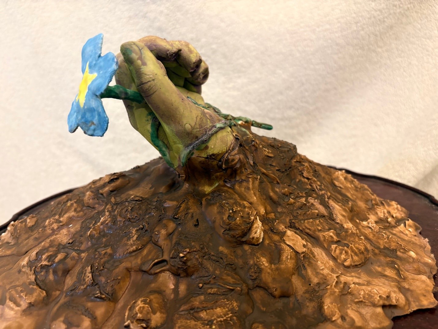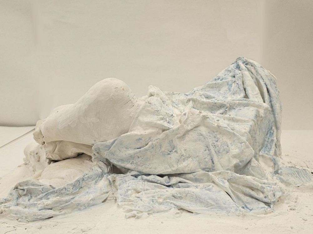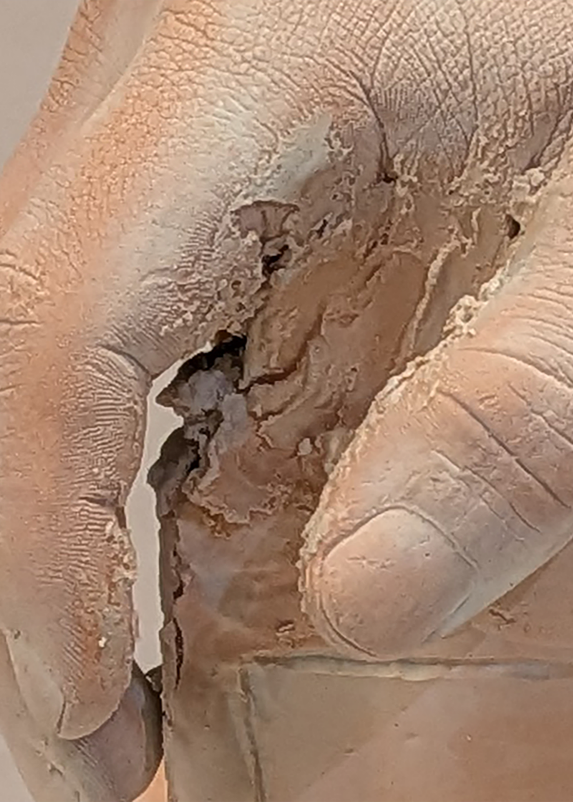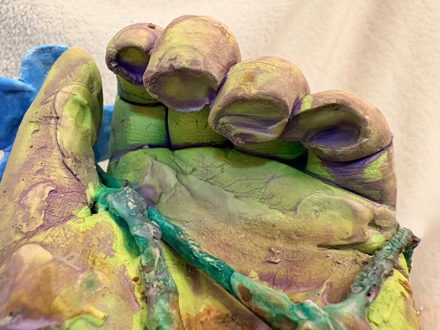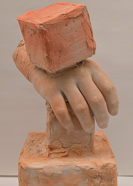 Cast a body part using Alginate and Plaster to: Make an “archeological fragment,” as if a hybrid statue that is part-self/part-other (of your creation) was made years ago, buried in earth, and then only a fragment of its body was unearthed; made of plaster (including cast, carved, and lay-up elements), the fragment should combine a cast element of your own body blended with an “other” form of your own making.