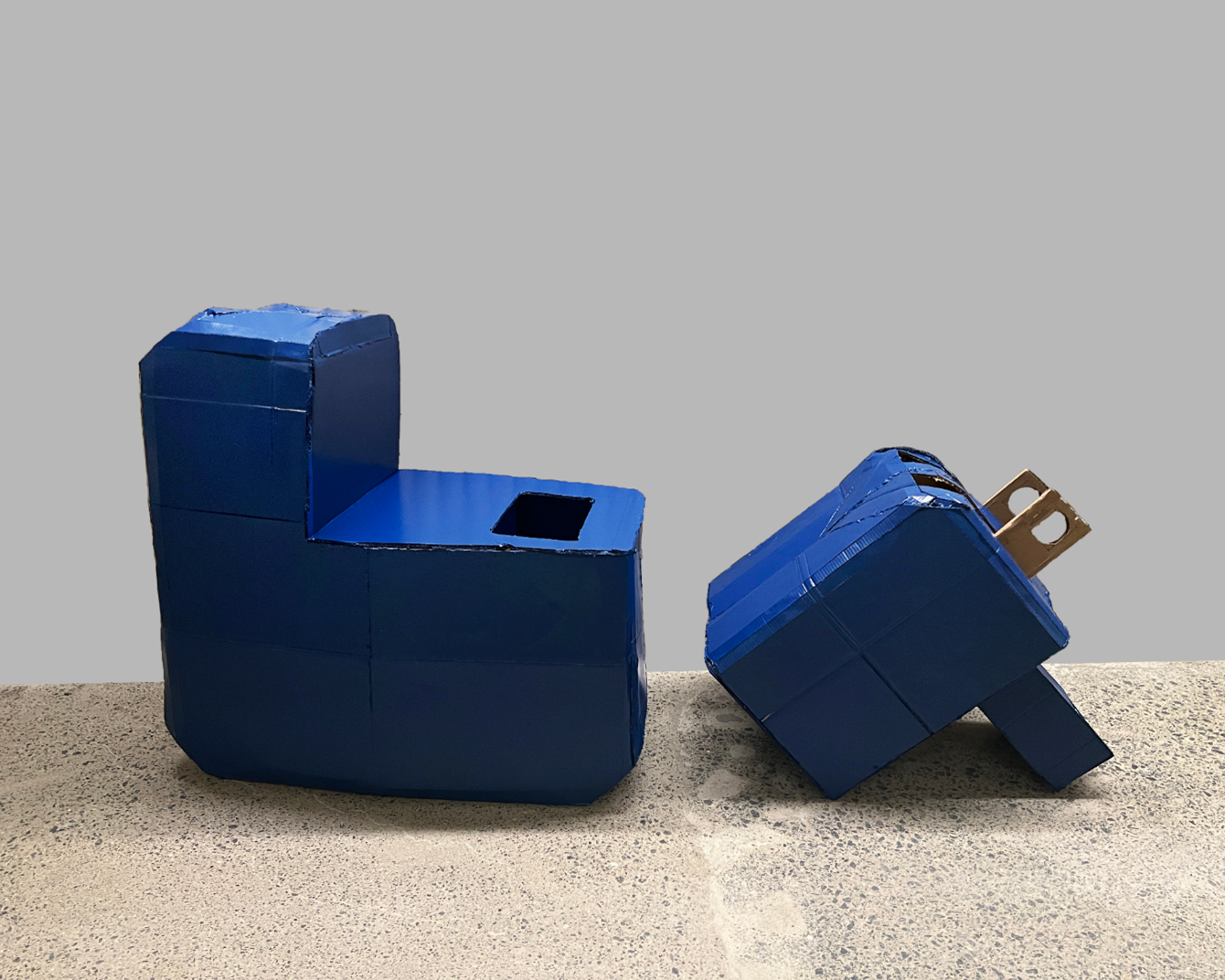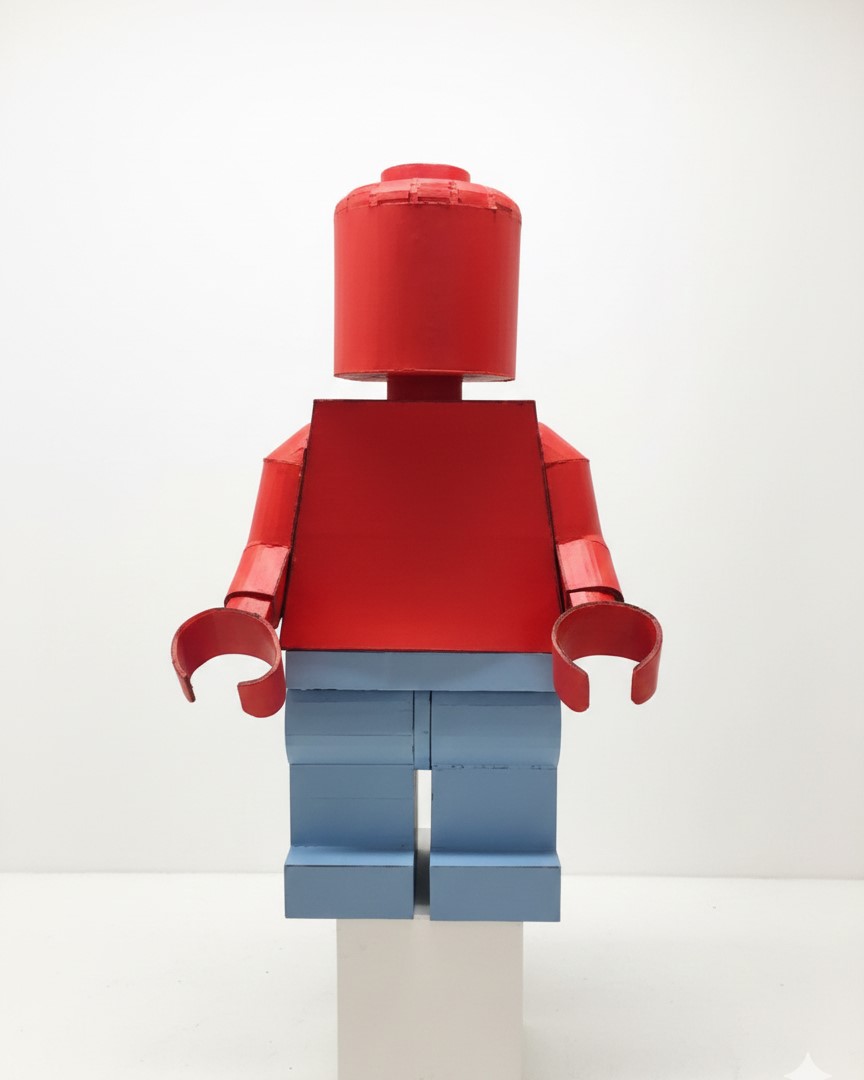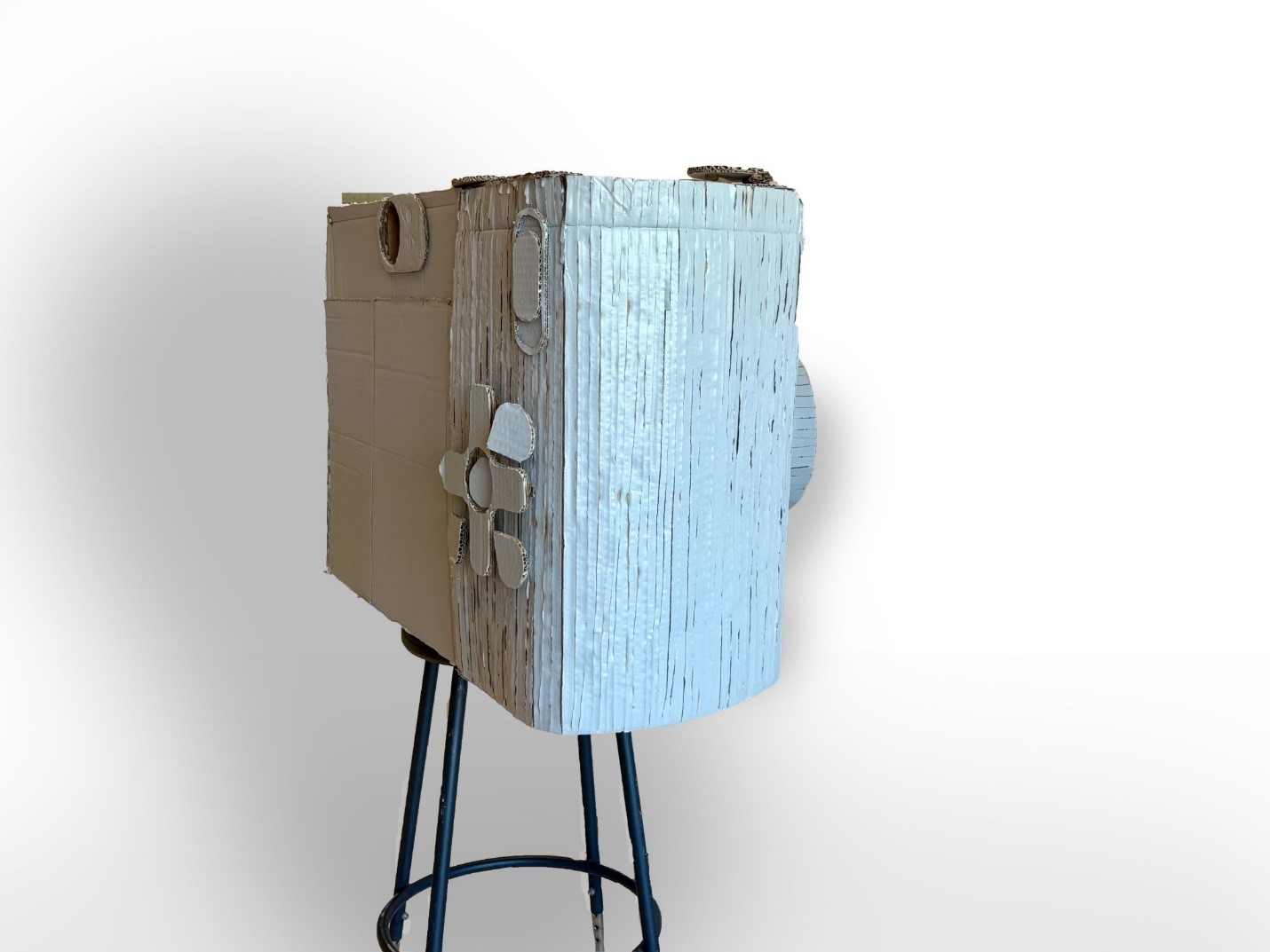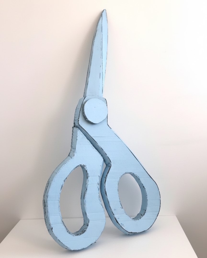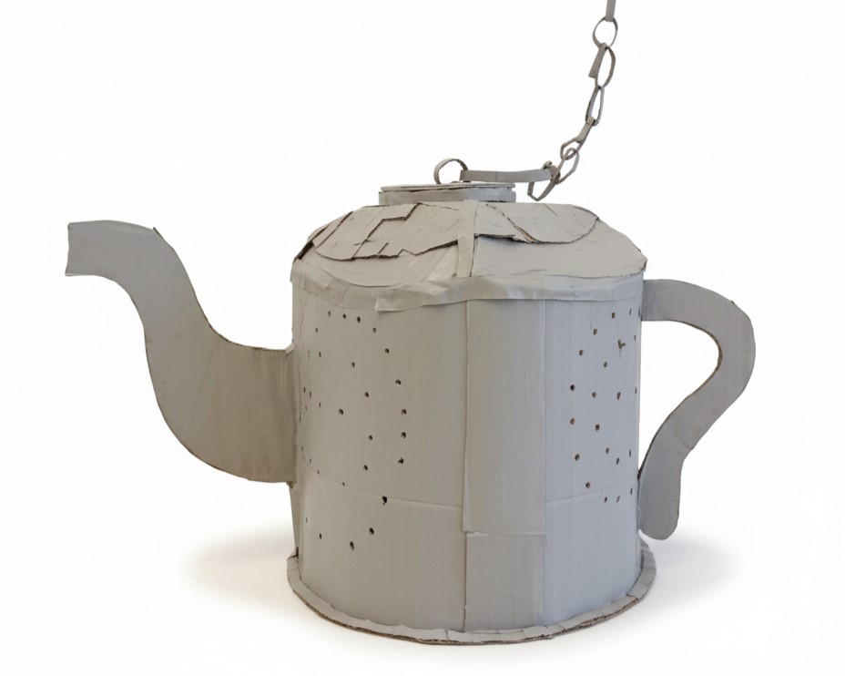Recreate a common object using a planear material: cardboard. Enlarge the object to at least 36 inches in one direction. Paint your final cardboard enlargement with a monochrome surface treatment.