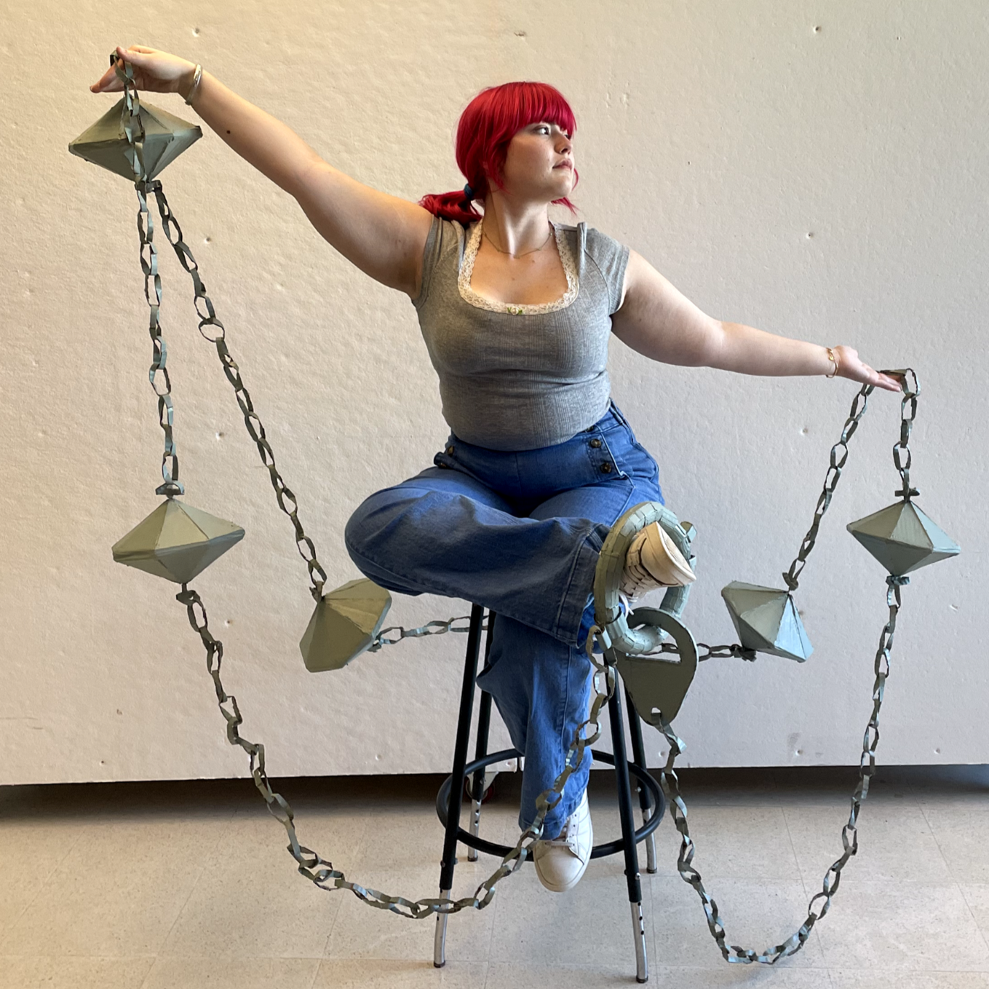 Abstract sculpture or Wearable sculpture or A usable design object, using one of this elements by rolling dice :(1) Incremental building, (2) Sequence, (3) Collage, (4) Distortion, (5) Randomization or (6) Accumulation, That Conveys on of these elements: (1) Texture, (2) Light/Shadow, (3) Movement, (4) Juxtaposition, (5) Calm/Chaos or (6) Experimentation.