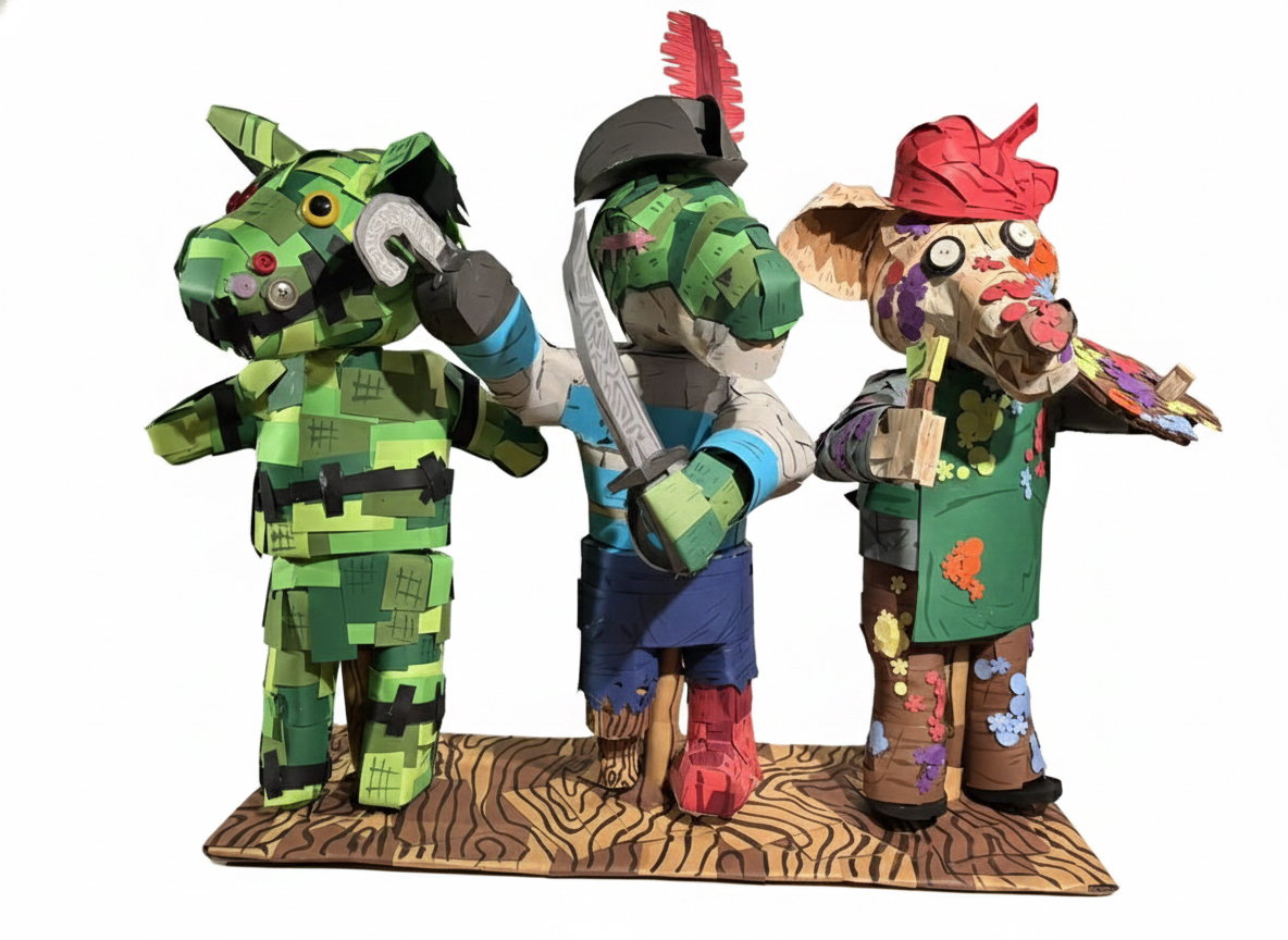 Surface Demos: wood pulp clay, paper clay, papier-mache, plaster wrap, sewin