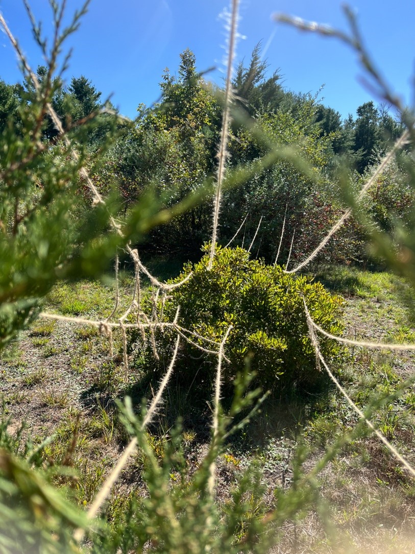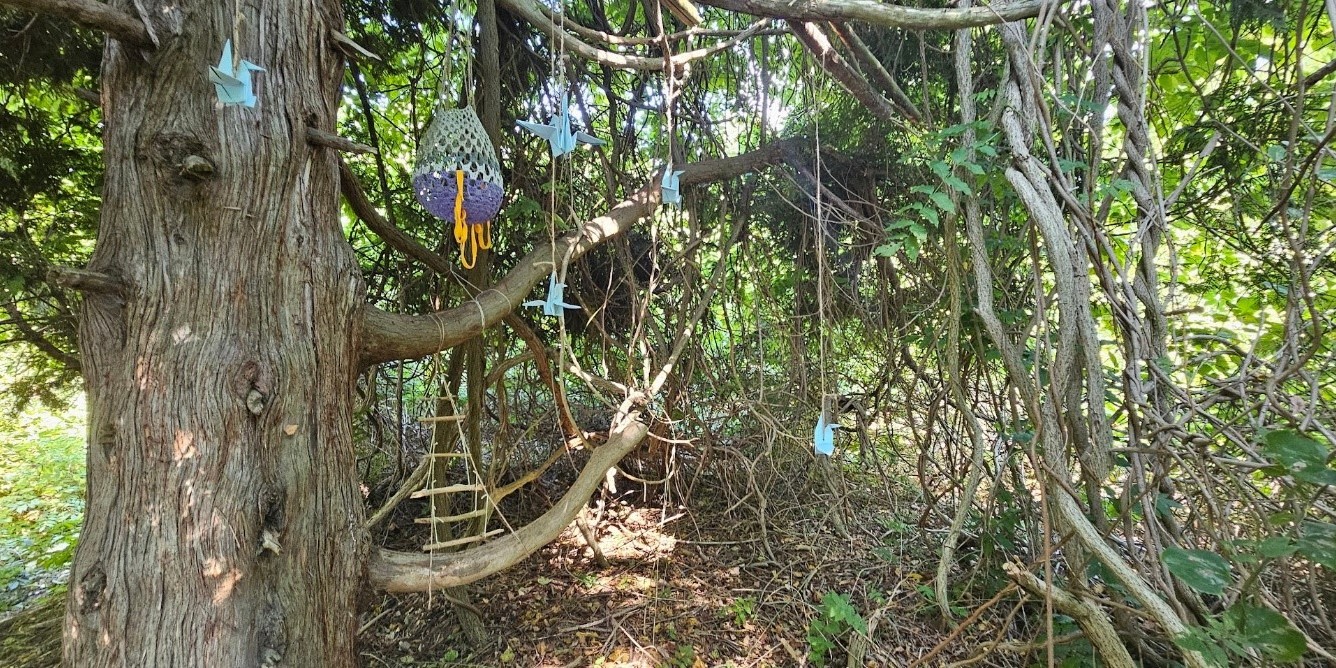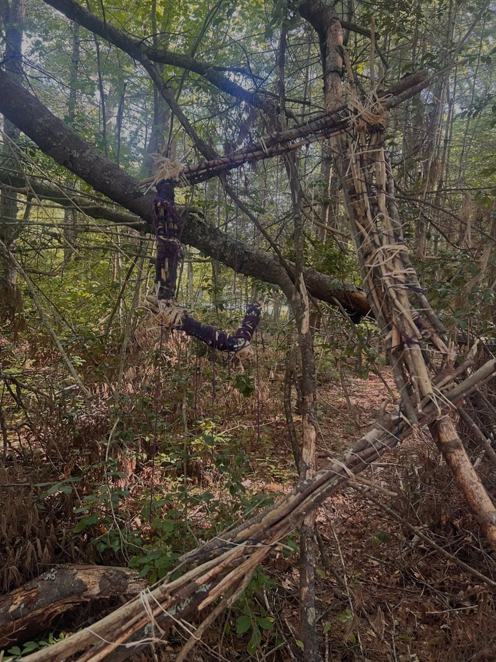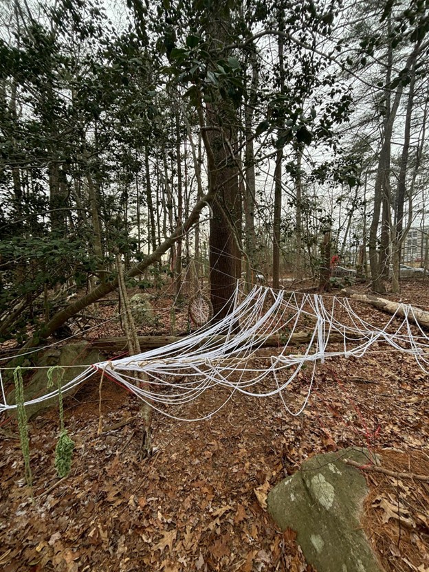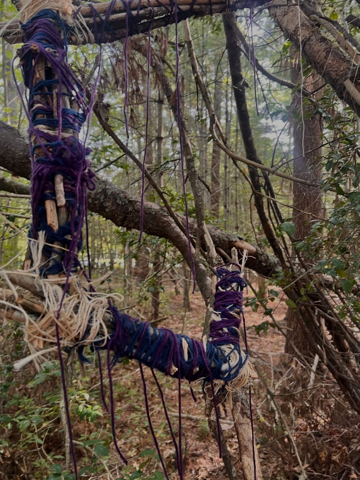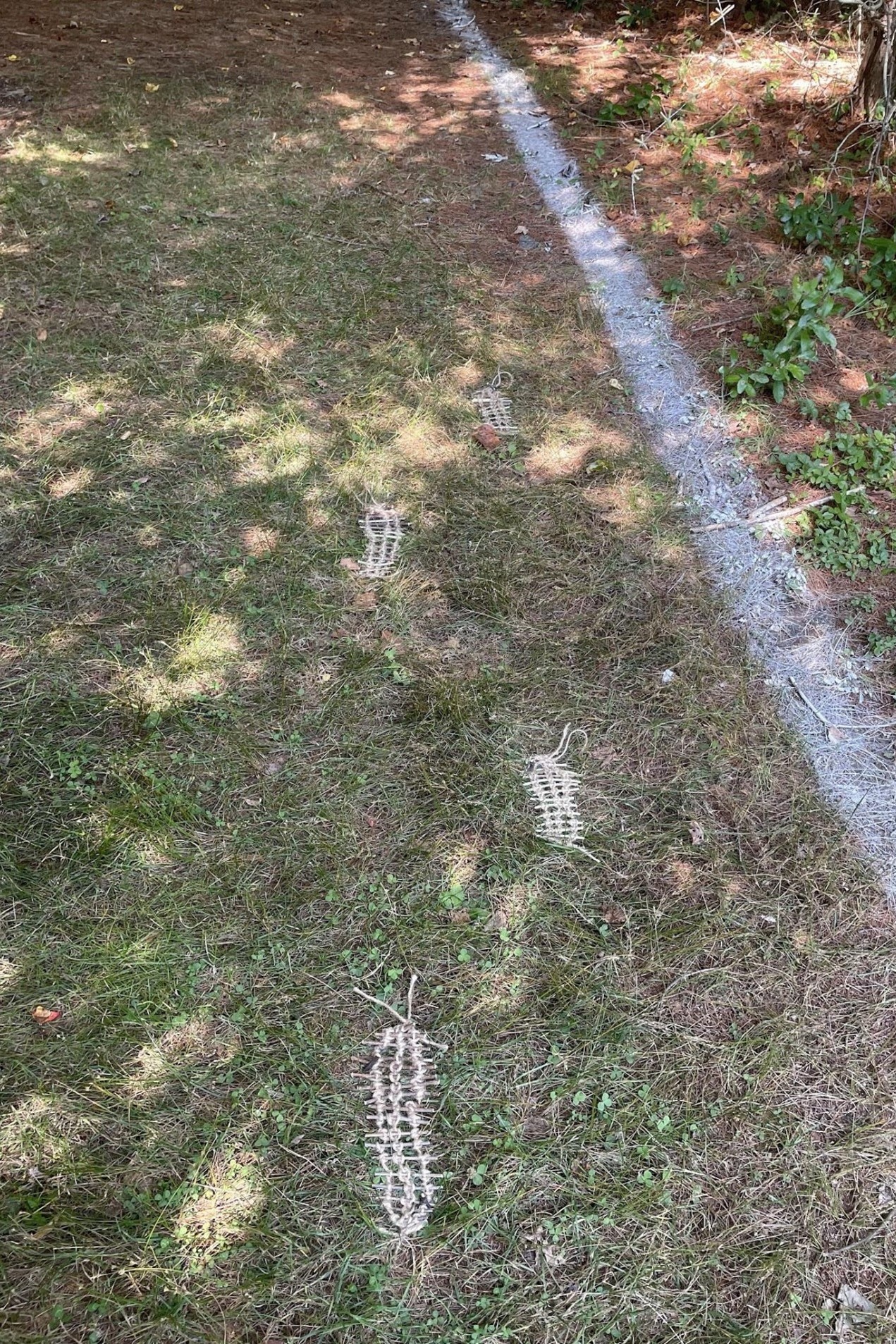 Make a site-specific sculptural intervention line piece. Combine a line with 1 material sourced from the surroundings through “harvesting from place.” Criteria: